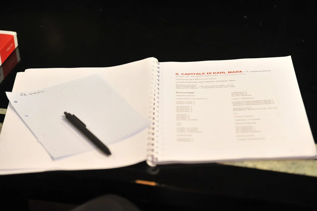 Punti di riferimento strutturali e storici (200 anni dalla nascita di Marx e 150 anni dalla pubblicazione del Primo Libro de IL Capitale) per una riflessione filosofica e scenica, imperniata sulla necessità contemporanea di leggere l’opera d’ingegno del passato come unica possibile fonte identitaria di questo presente distratto e confuso, che darà luogo ad un cenacolo interdisciplinare (ottobre 2017 / aprile 2018) per attrici, attori, drammaturghi, compositori, storici e critici, investiti di responsabilità creative all’interno di un teatro sempre più scomposto e scomponibile.