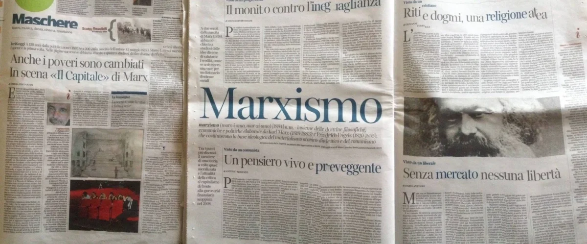 Visto da un progressista: “… se esso ha inciso così profondamente su centocinquant’anni di storia, se ha avuto un effetto paragonabile solo a quello dei fondatori di religioni, ciò significa che ha toccato dei punti nevralgici, che ha dato risposta a dei bisogni essenziali…” Stefano Petrucciani (Corriere della Sera)